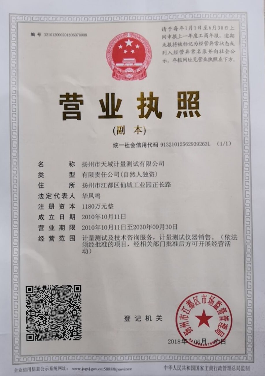 揚州市天域計量測試有限公司,坐落在交通便利的揚州市江都區(qū)仙城工業(yè)園,成立于2010年10月,2011年11月正式獲取中國合格評定國家認可委員會認可(授權(quán)),注冊號:CNAS L5296。近幾年的發(fā)展,實驗室已具備了較大規(guī)模,并形成了集計量器具檢測,計量技術(shù)咨詢和計量器具銷售為一體的專業(yè)化技術(shù)機構(gòu),客戶覆蓋蘇南、蘇北、和浙江,安徽部分地區(qū),客戶群總量達到了上千家企事業(yè)單位。實驗室建立健全了一套較為完整的內(nèi)外部質(zhì)量管理體系,至今未發(fā)生糾紛和客戶投訴事件。